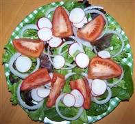 1.Arrange tomatoes, onion, lettuce, and radishes on a serving platter, or toss them together in a salad bowl.