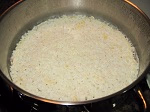 Add the washed rice and stir. Bring to a rolling boil again, cover and cook over low heat for approximately 30 minutes.