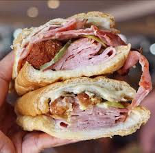 Ham, roast pork, two croquettes, swiss cheese, pickles and mustard on Cuban bread!