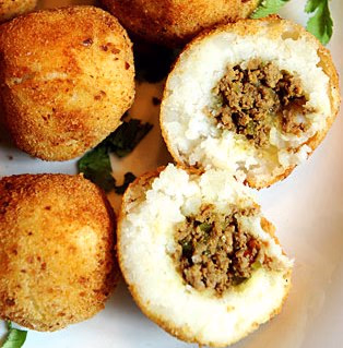 Good for parties, "merienda" and snack. A dish of mashed potatoes stuffed with seasoned ground meat,various spices then deep fried
